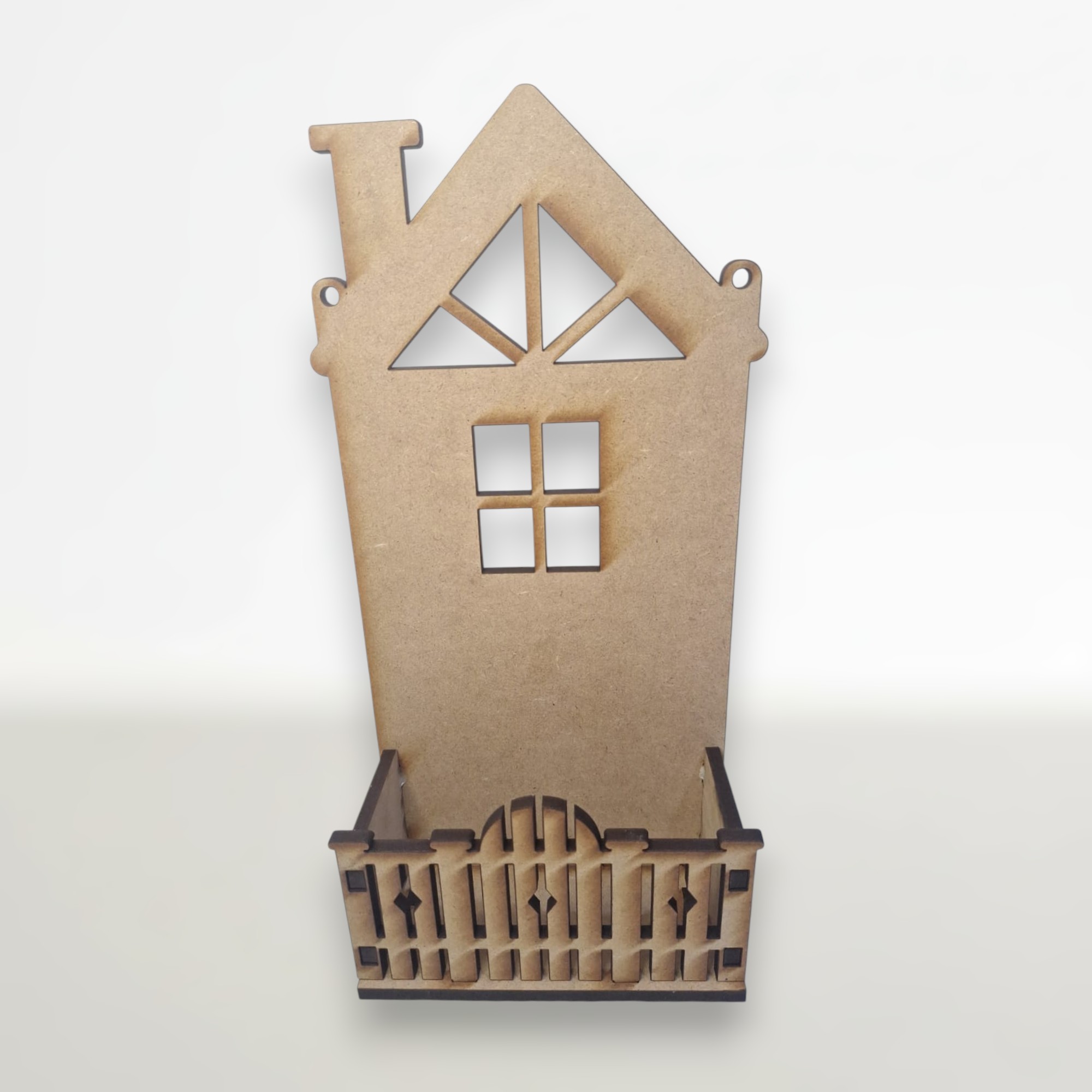 Ela é feita de MDF de alta qualidade, cortada a laser para um acabamento preciso.