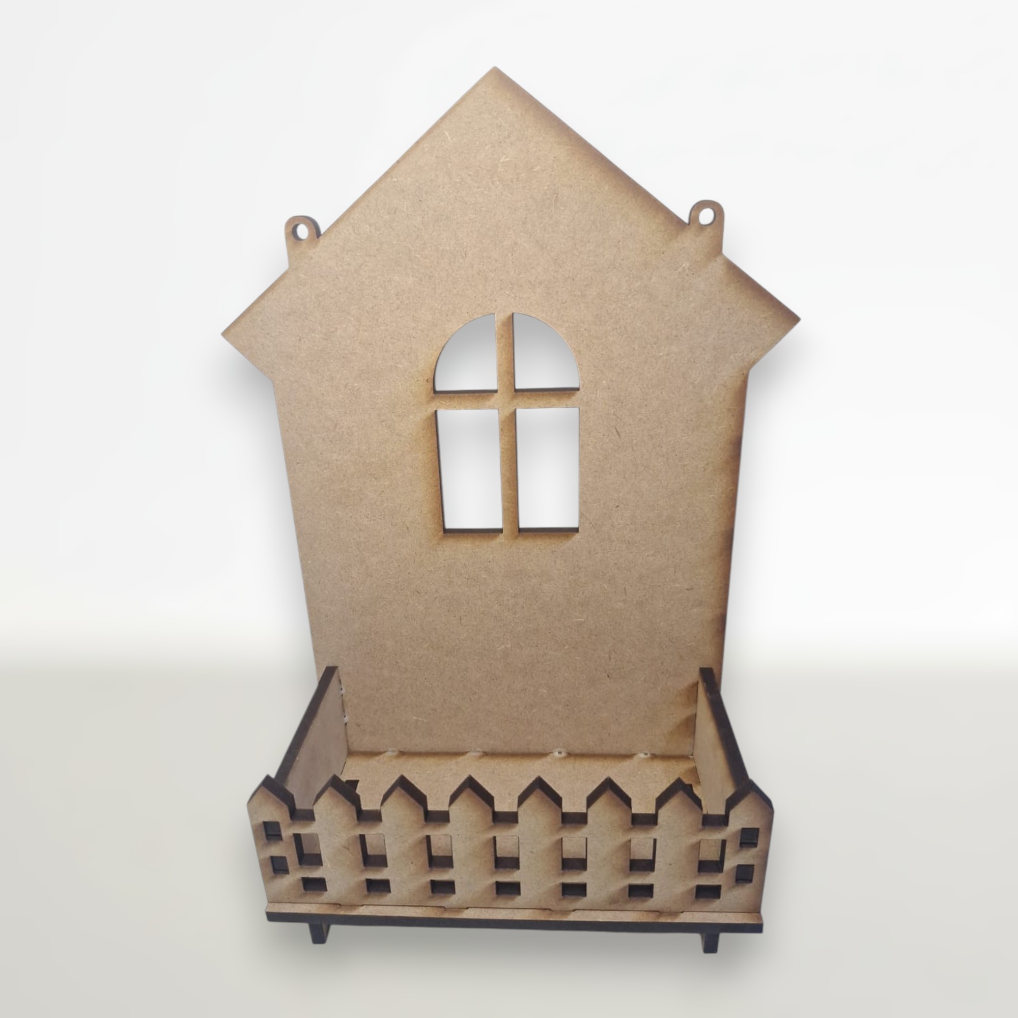 Ela é feita de MDF de alta qualidade, cortada a laser para um acabamento preciso.