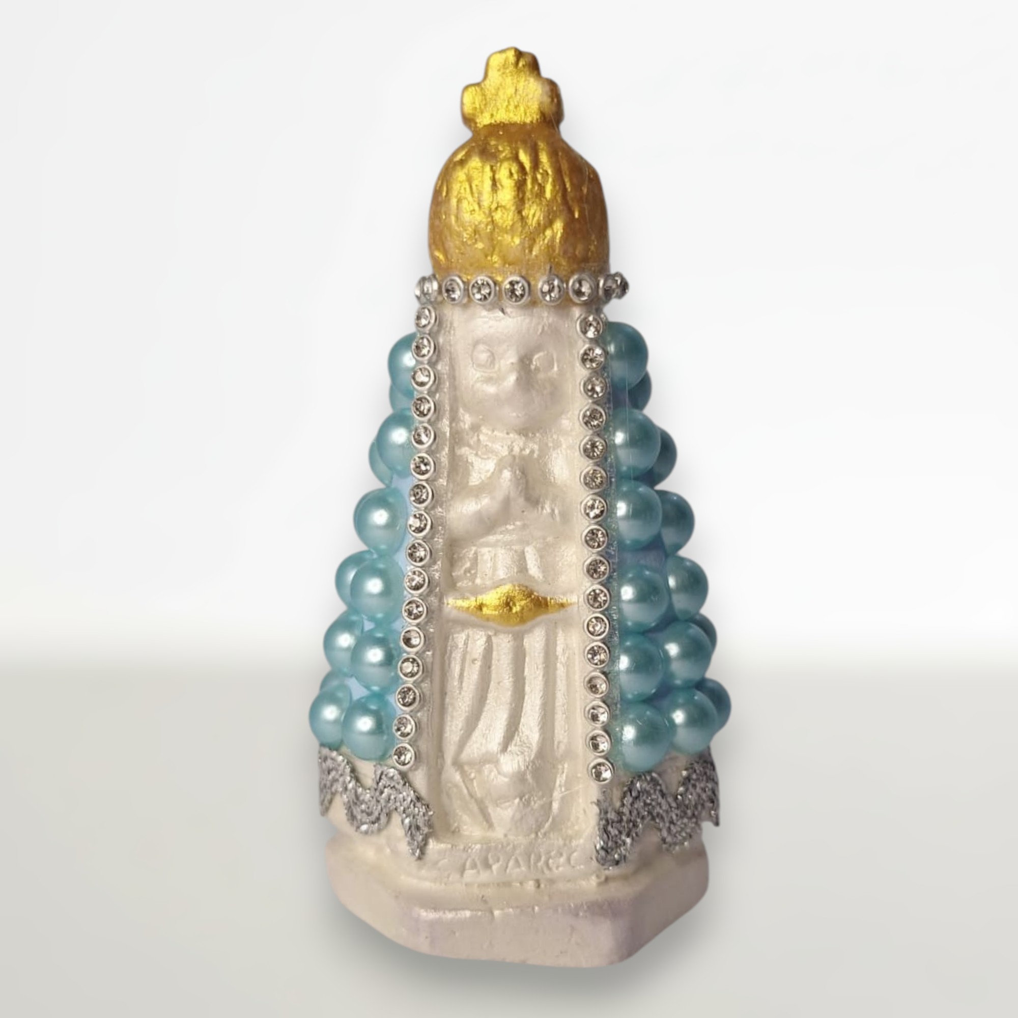 Com 10 cm de altura, é perfeita para oratórios, altares, ou como uma lembrancinha especial em eventos religiosos.